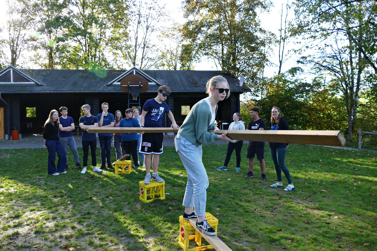 Hochmotiviert meistern die Jugendlichen eine Station nach der anderen, die im Außengelände des Abenteuerdorfs Wittgenstein in Bad Berleburg-Wemlighausen vorbereitet wurden. Das Ziel: Sie wollen sich zu besseren Mitarbeitenden für die ehrenamtliche Arbeit mit Kindern und Jugendlichen schulen lassen. Das Referat für Jugend und Gemeindepädagogik des Evangelischen Kirchenkreises Siegen-Wittgenstein hatte dazu eingeladen und rund 60 Jugendliche und junge Erwachsene aus dem gesamten Gebiet des Kirchenkreises folgten der Einladung. „Wir wurden überrannt“, sagt Franziska Schneider mit Blick auf die hohe Zahl der Anmeldungen.